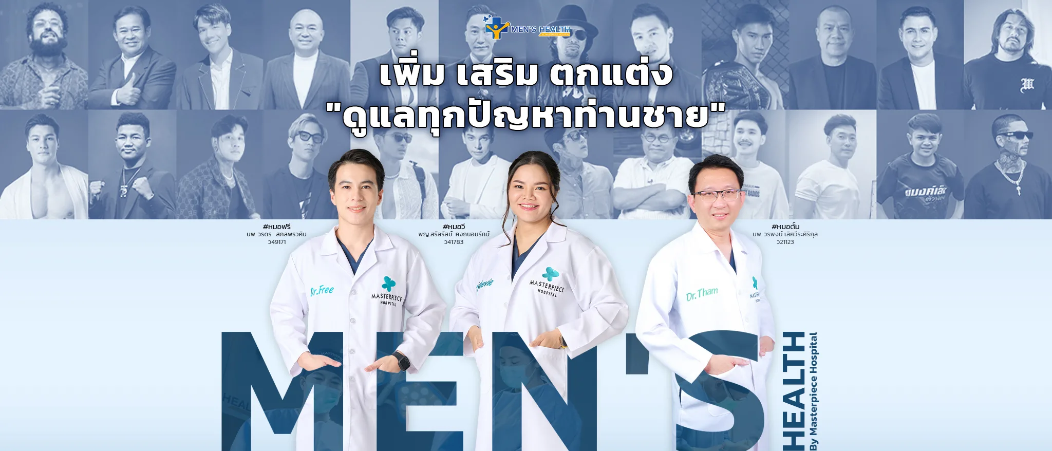 โรงพยาบาลมสเตอร์พีซเข้าใจถึงความเปลี่ยนแปลงทางร่างกายและจิตใจที่ผู้ชายต้องเผชิญในแต่ละช่วง เราจึงพัฒนา “Men’s Health By Masterpiece” ซึ่งให้บริการด้านสุขภาพผู้ชาย ด้วยทีมแพทย์ผู้มีประสบการณ์ พร้อมเทคโนโลยีที่ทันสมัย เพื่อช่วยฟื้นฟู เสริม และแก้ไขปัญหาสำคัญอย่างตรงจุด
